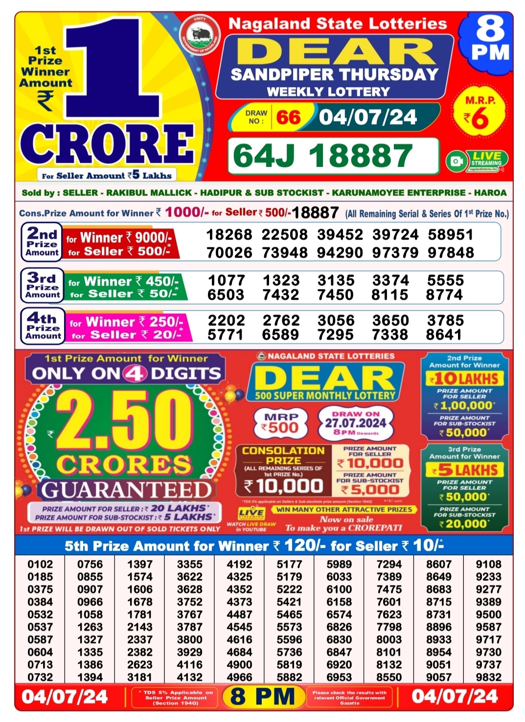 Dear sandpiper Thursday weekly lottery 8pm result 4/07/24 04-07-2024 Leave a Comment on Dear sandpiper Thursday weekly lottery 8pm result 4/07/24