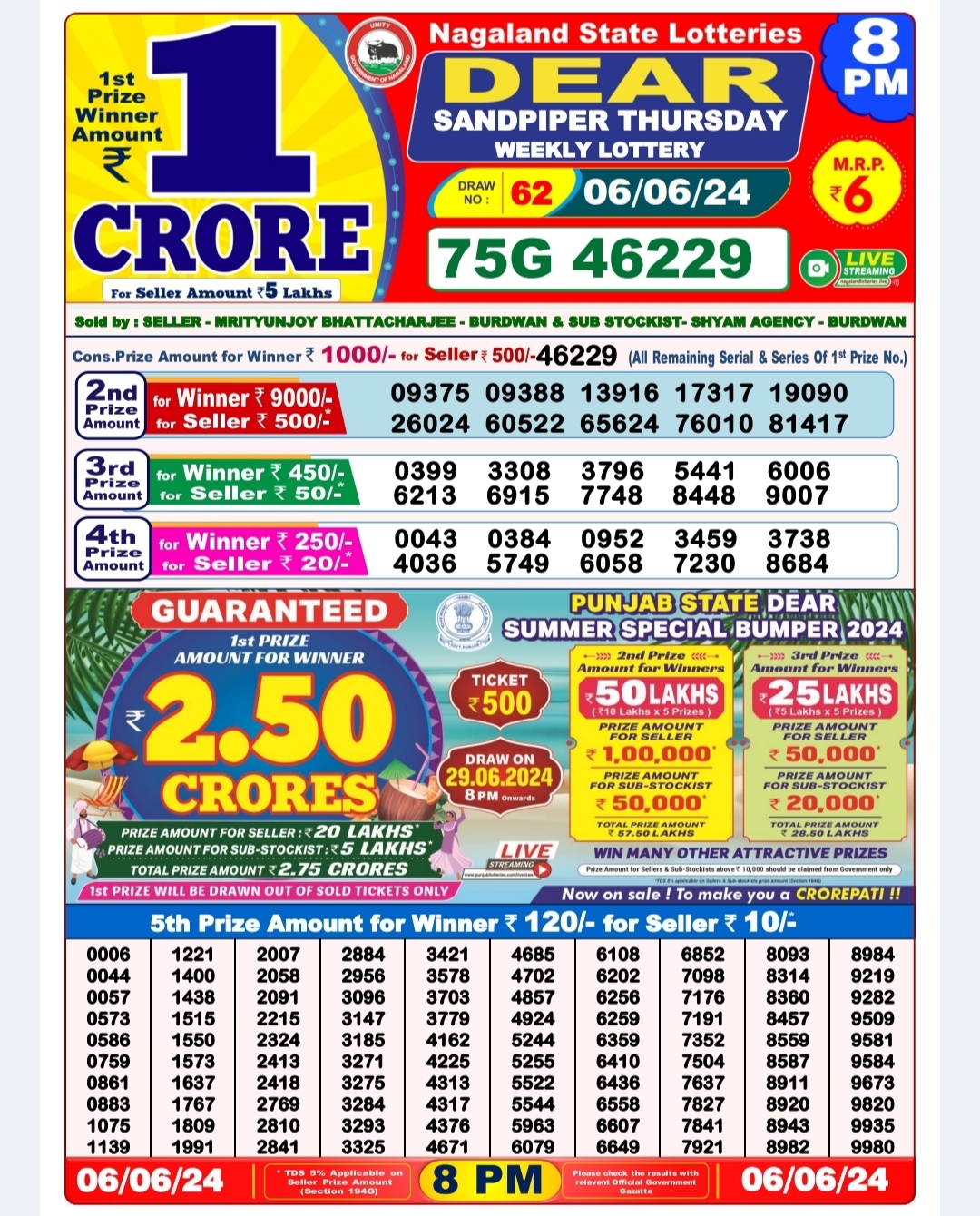 Dear sandpiper Thursday weekly lottery 8pm result 6/06/24 06-06-2024 Leave a Comment on Dear sandpiper Thursday weekly lottery 8pm result 6/06/24