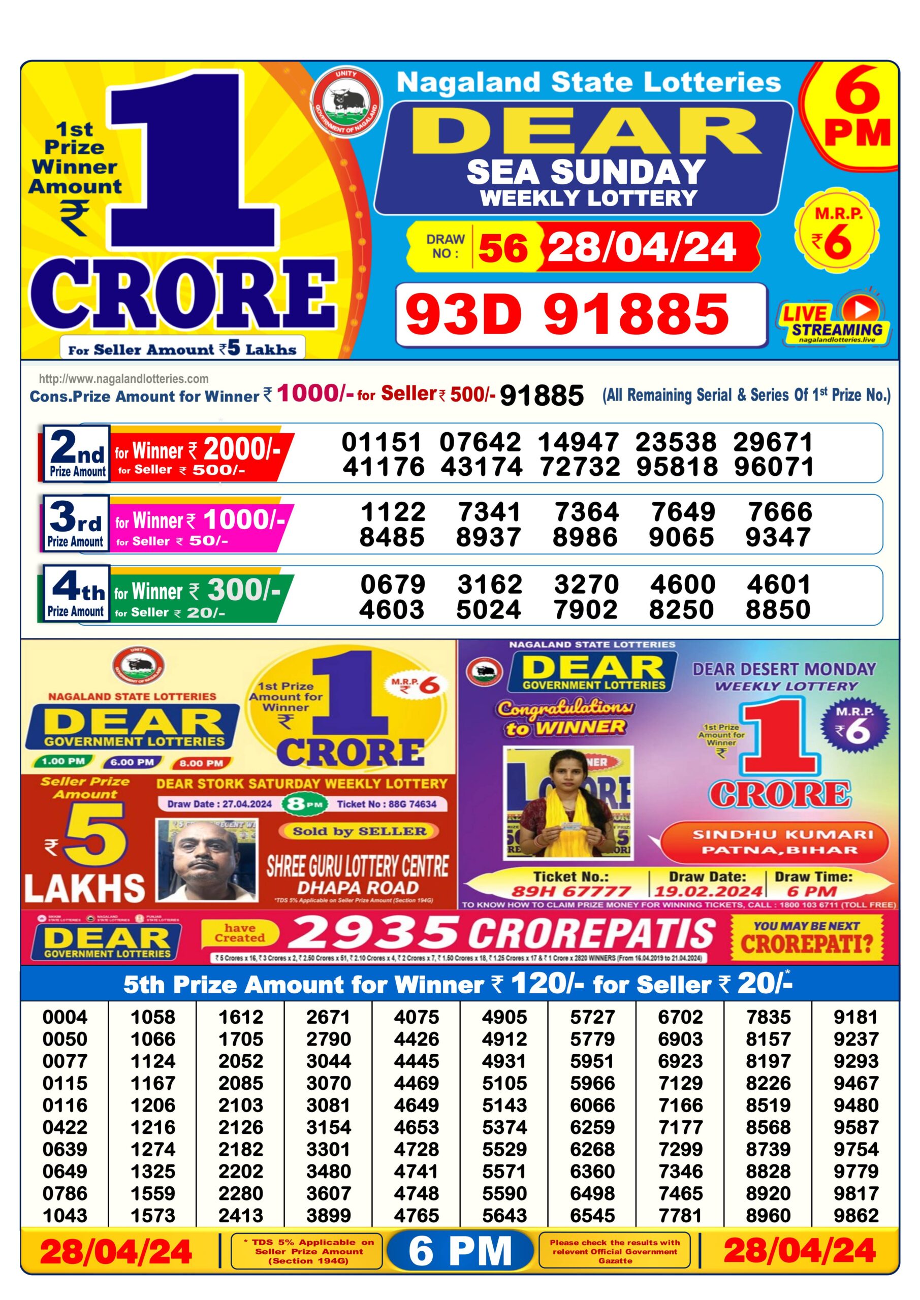 Dear sea sunday weekly lottery 6pm result 28/04/24 28-04-2024 Leave a Comment on Dear sea sunday weekly lottery 6pm result 28/04/24