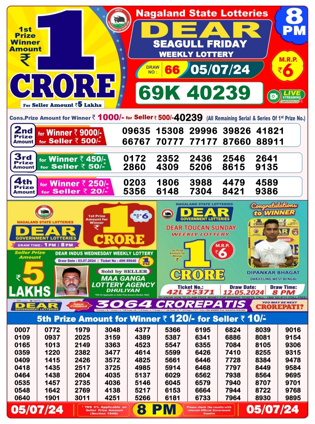 Dear seagull Friday weekly lottery 8pm result 5/07/24 05-07-2024 Leave a Comment on Dear seagull Friday weekly lottery 8pm result 5/07/24