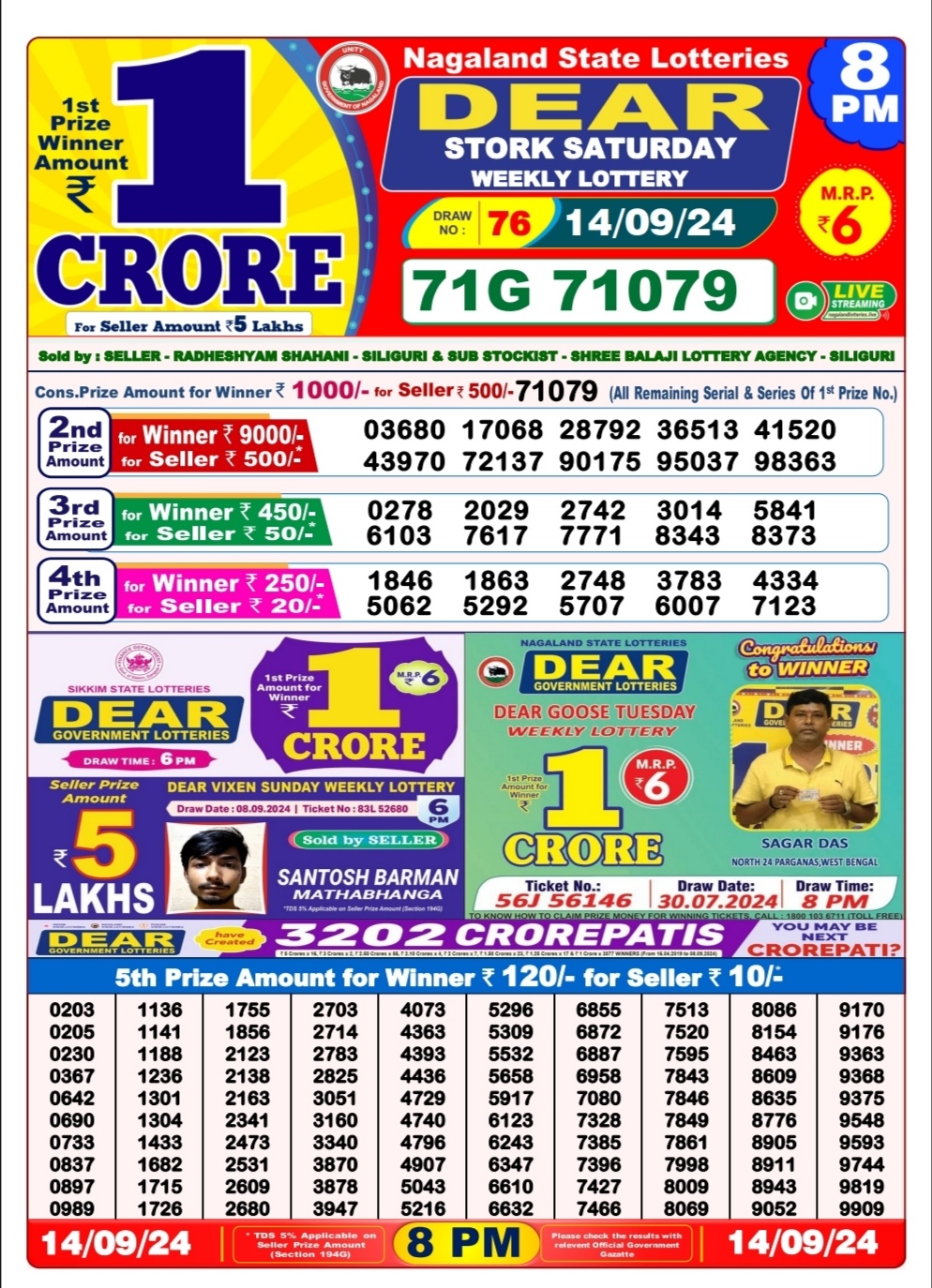 Dear stork saturday weekly lottery 8pm result 14/09/24 14-09-2024 Leave a Comment on Dear stork saturday weekly lottery 8pm result 14/09/24