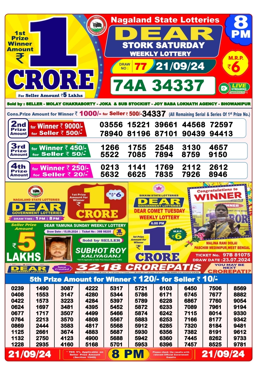 Dear stork saturday weekly lottery 8pm result 21/09/24 21-09-2024 Leave a Comment on Dear stork saturday weekly lottery 8pm result 21/09/24