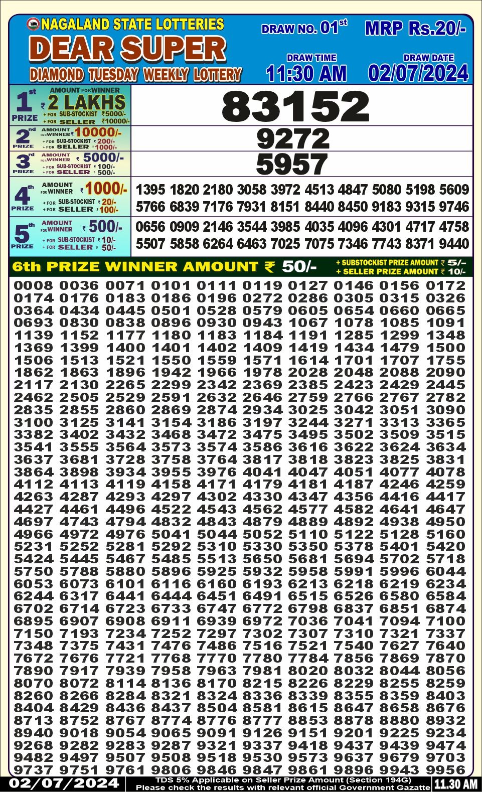 Dear super diamond tuesday weekly lottery 11.30am result 2/07/24 02-07-2024 Leave a Comment on Dear super diamond tuesday weekly lottery 11.30am result 2/07/24