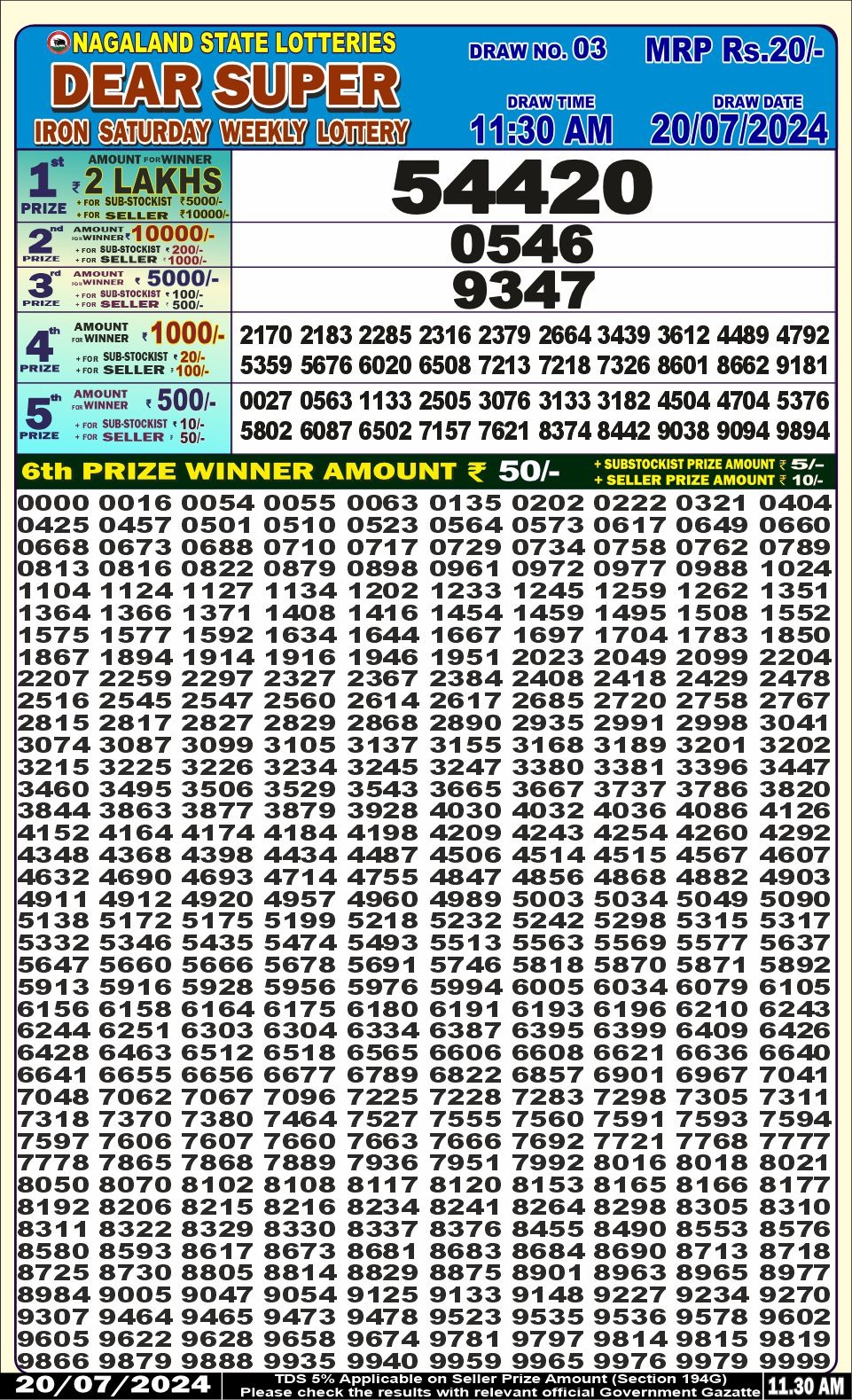 Dear super iron saturday weekly lottery 11.30am result 20/07/24 20-07-2024 Leave a Comment on Dear super iron saturday weekly lottery 11.30am result 20/07/24
