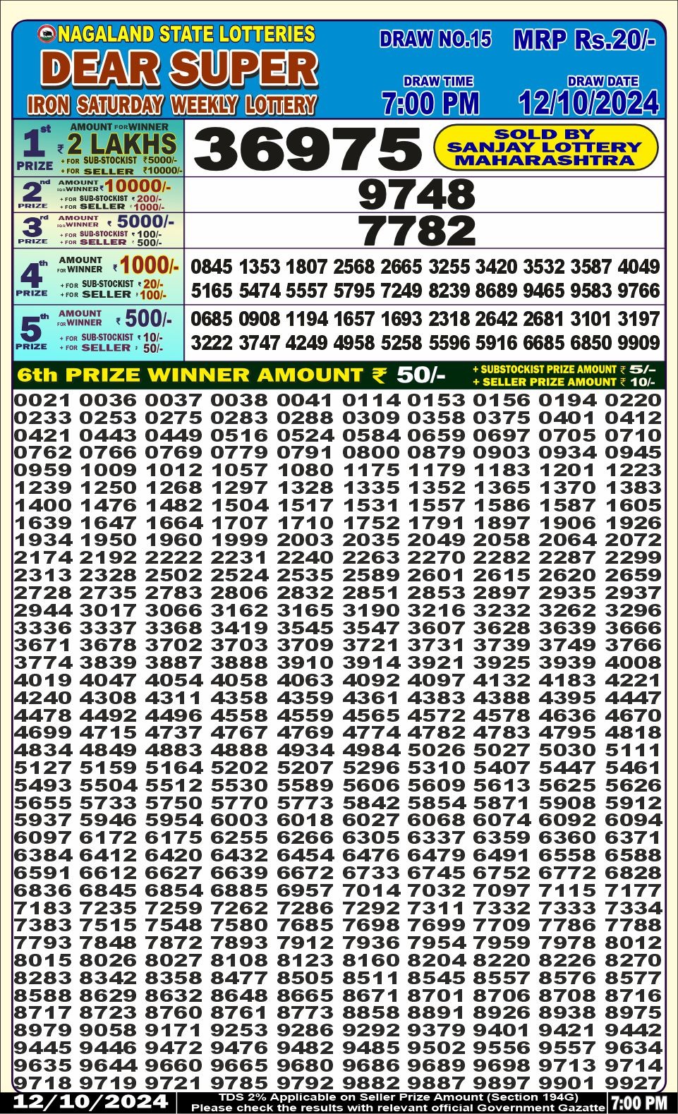 Dear super iron saturday weekly lottery 7pm result 12/10/24 12-10-2024 Leave a Comment on Dear super iron saturday weekly lottery 7pm result 12/10/24