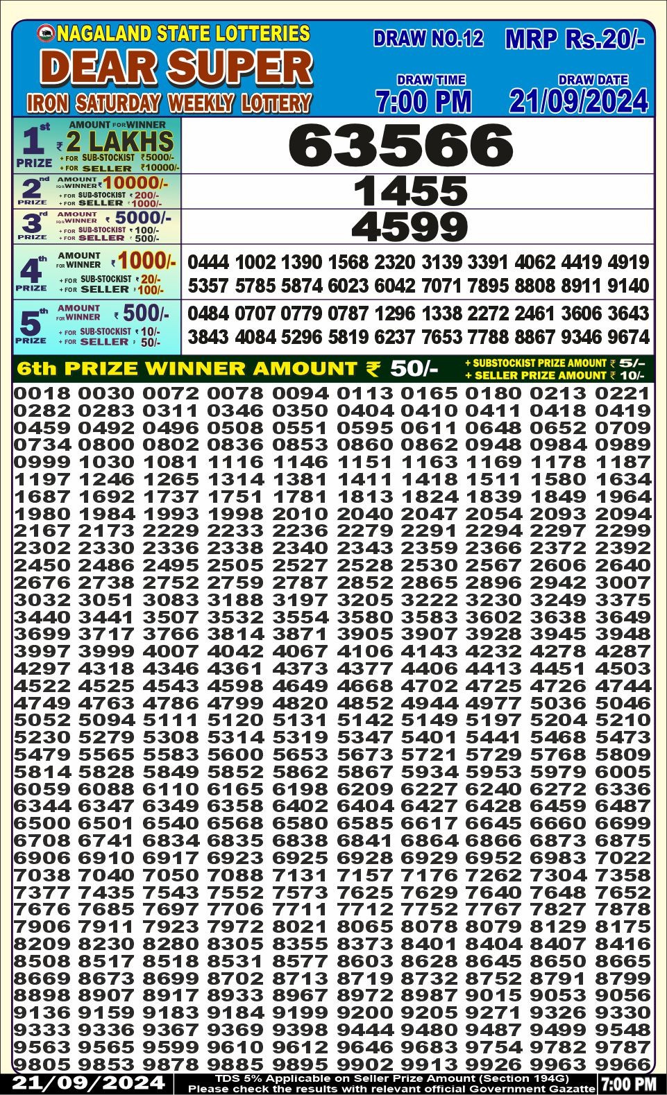 Dear super iron saturday weekly lottery 7pm result 21/09/24 21-09-2024 Leave a Comment on Dear super iron saturday weekly lottery 7pm result 21/09/24
