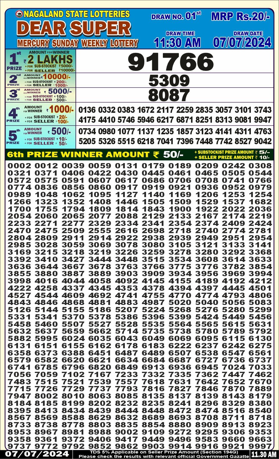 Dear super mercury sunday weekly lottery 11.30am result 7/07/24 07-07-2024 Leave a Comment on Dear super mercury sunday weekly lottery 11.30am result 7/07/24
