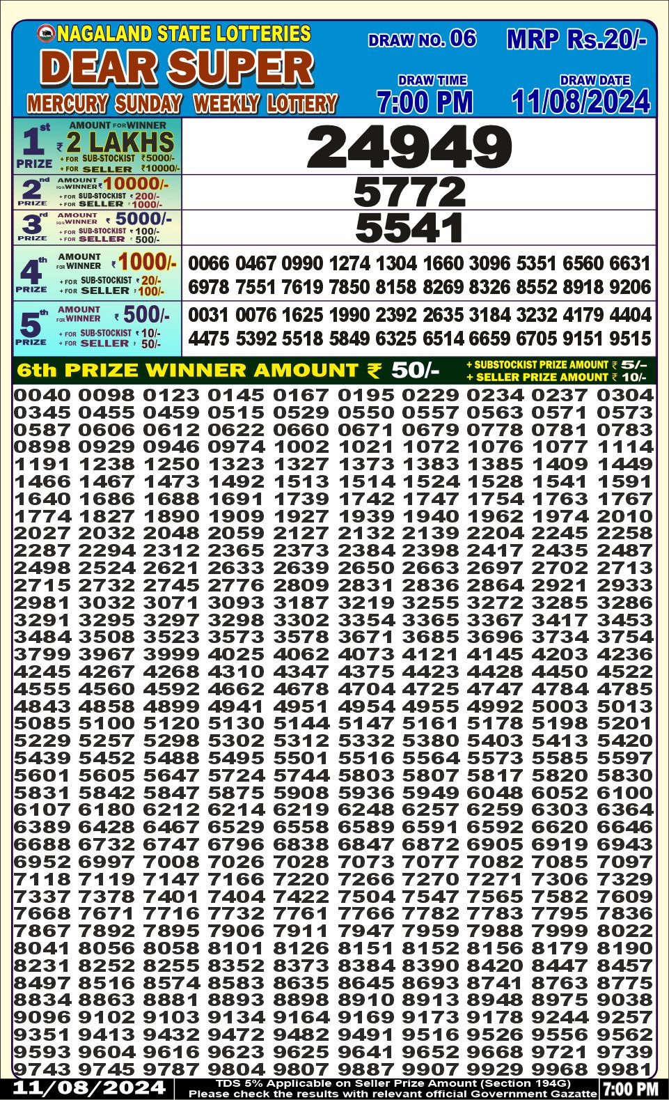Dear super mercury sunday weekly lottery 7pm result 11/08/24 11-08-2024 Leave a Comment on Dear super mercury sunday weekly lottery 7pm result 11/08/24
