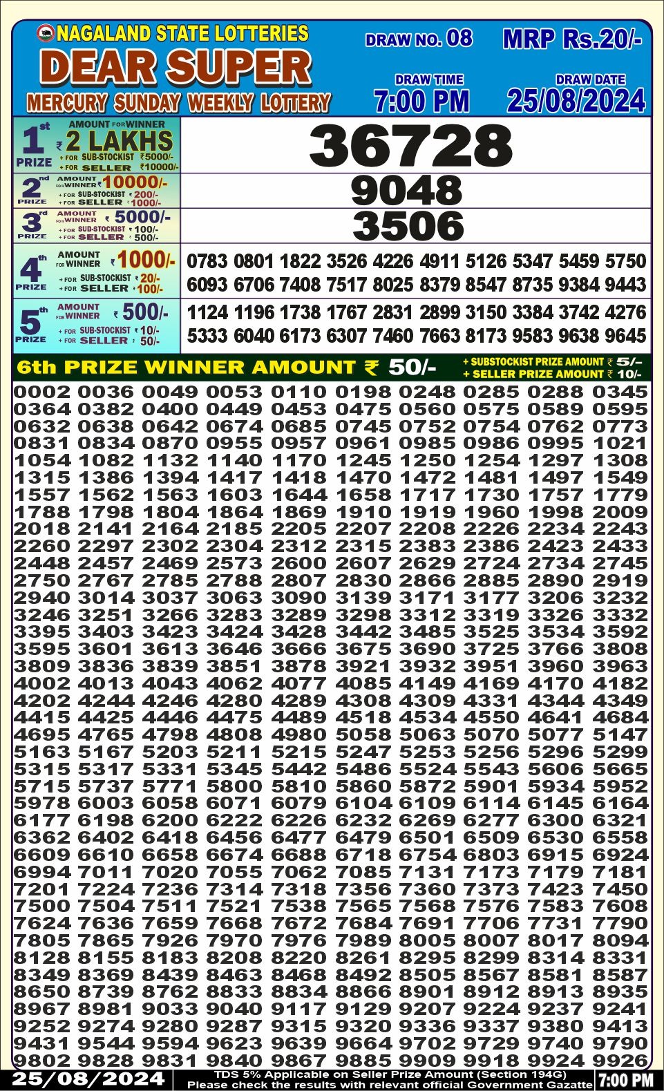 Dear super mercury sunday weekly lottery 7pm result 25/08/24 25-08-2024 Leave a Comment on Dear super mercury sunday weekly lottery 7pm result 25/08/24