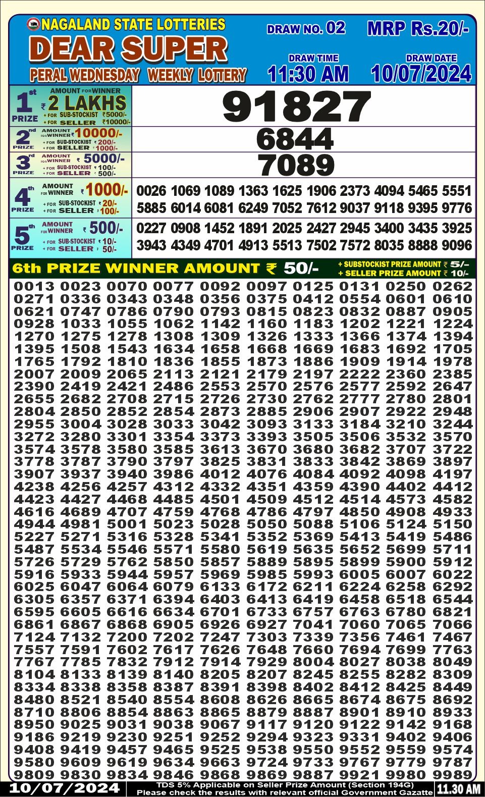 Dear super peral Wednesday weekly lottery 11.30am result 10/07/24 10-07-2024 Leave a Comment on Dear super peral Wednesday weekly lottery 11.30am result 10/07/24