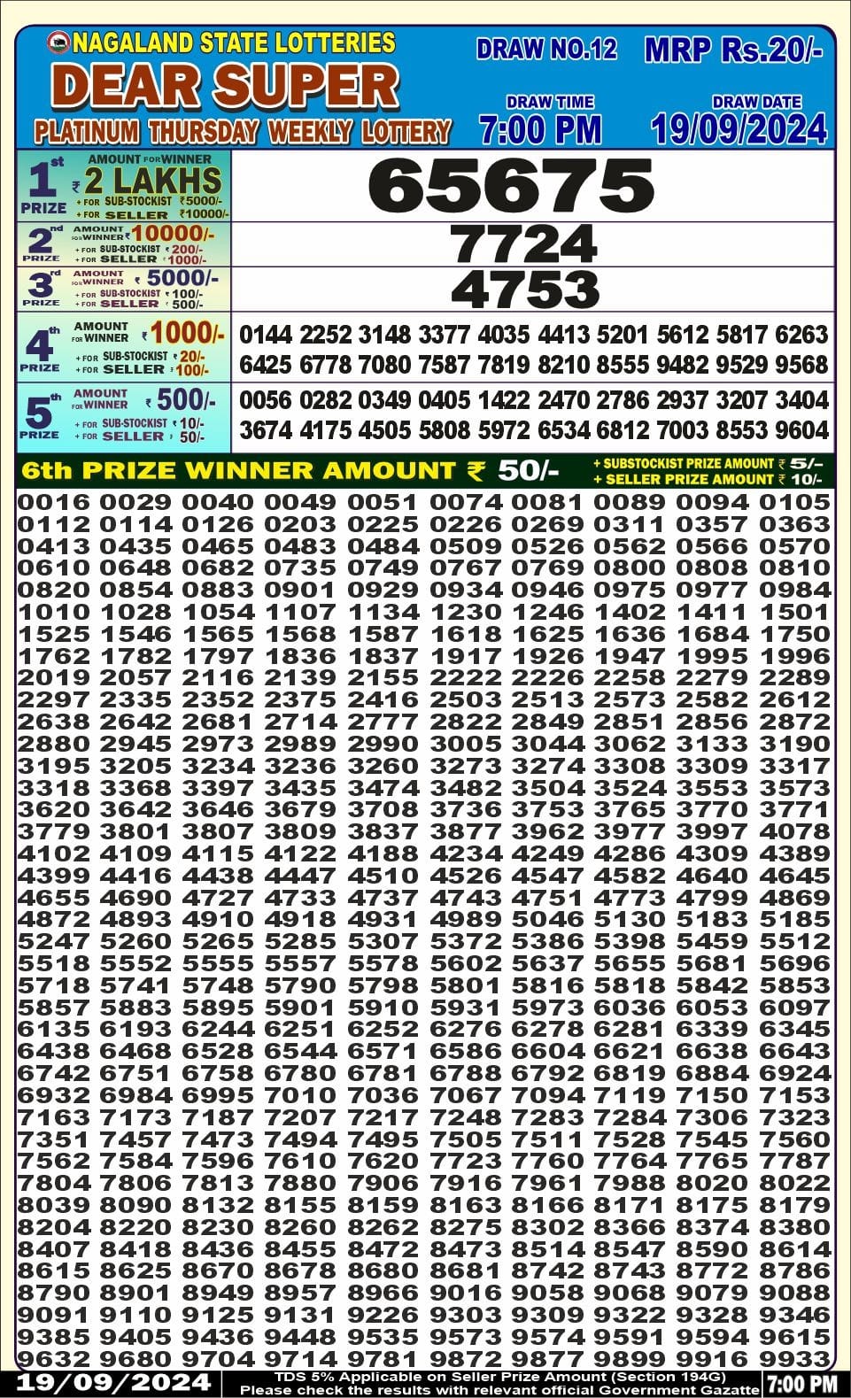 Dear super platinum Thursday weekly lottery 7pm result 19/09/2024 19-09-2024 Leave a Comment on Dear super platinum Thursday weekly lottery 7pm result 19/09/2024