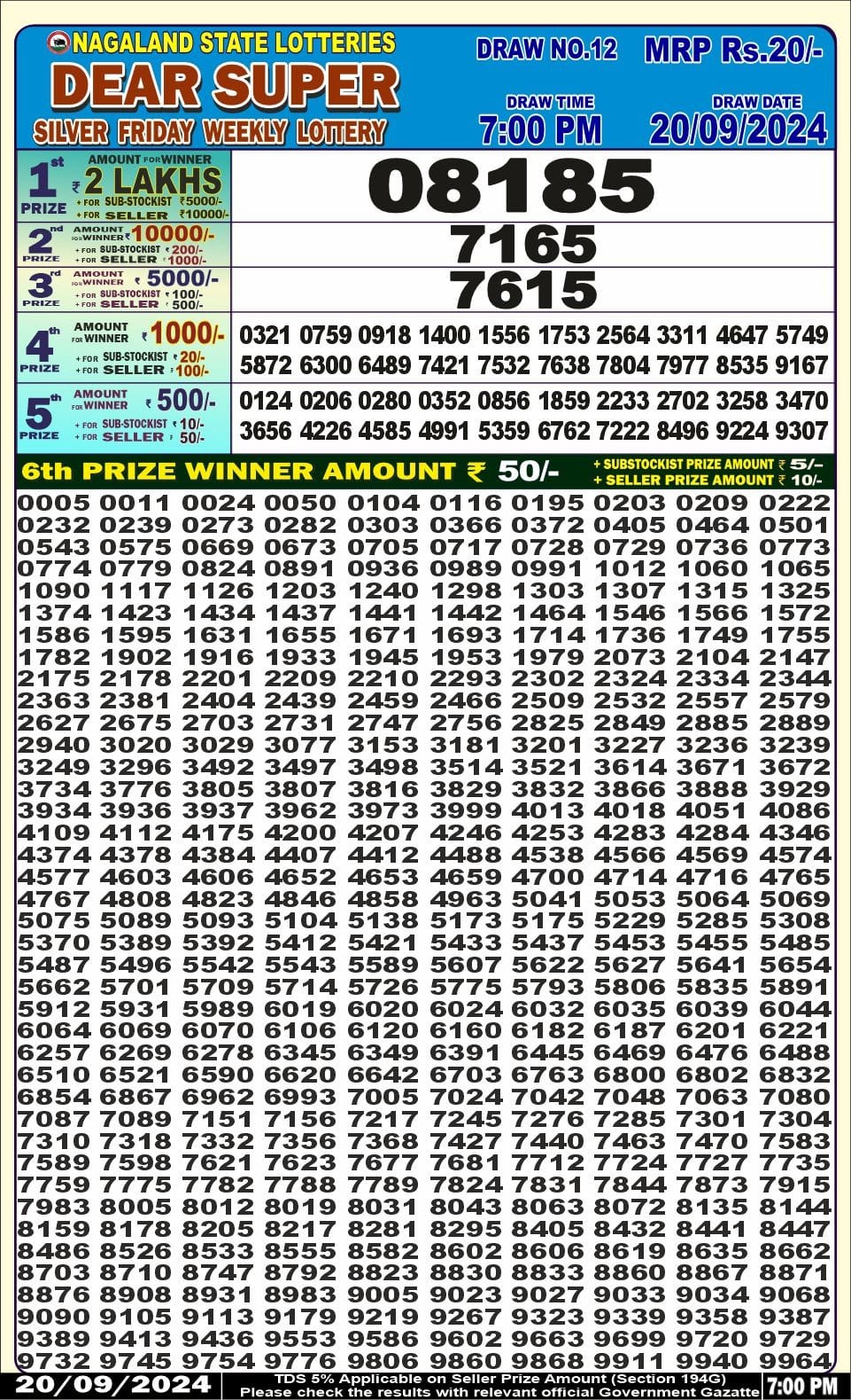 Dear super silver Friday weekly lottery 7pm result 20/09/24 20-09-2024 Leave a Comment on Dear super silver Friday weekly lottery 7pm result 20/09/24