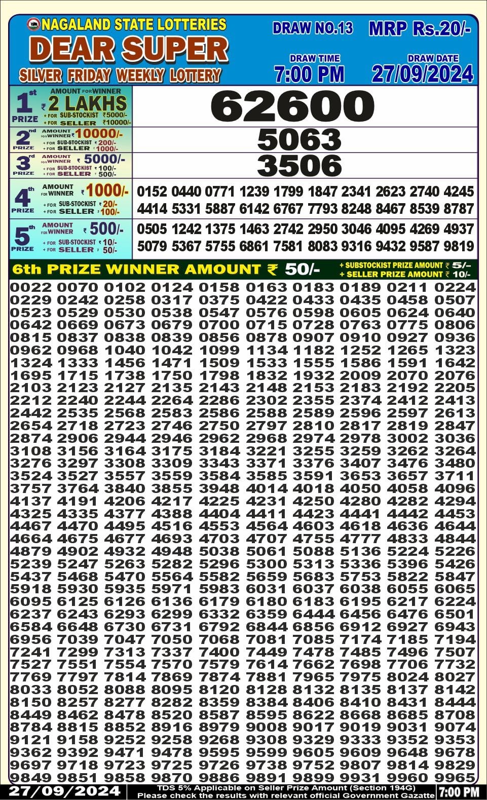 Dear super silver Friday weekly lottery 7pm result 27/09/24 27-09-2024 Leave a Comment on Dear super silver Friday weekly lottery 7pm result 27/09/24