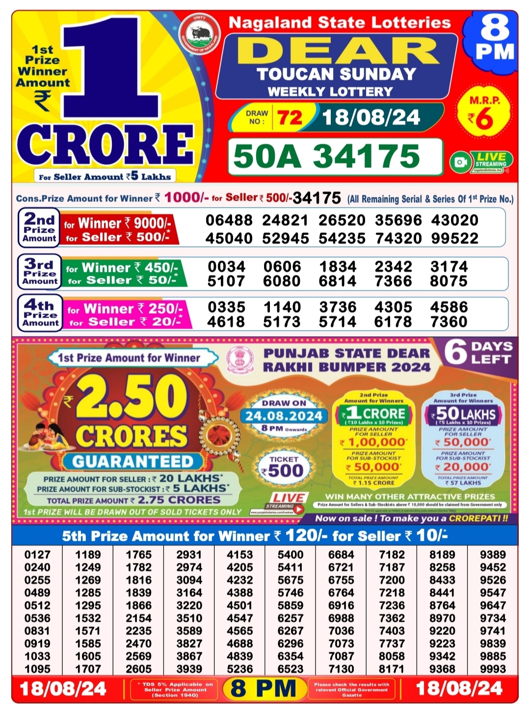 Dear toucan sunday weekly lottery 8pm result 18/08/24 18-08-2024 Leave a Comment on Dear toucan sunday weekly lottery 8pm result 18/08/24