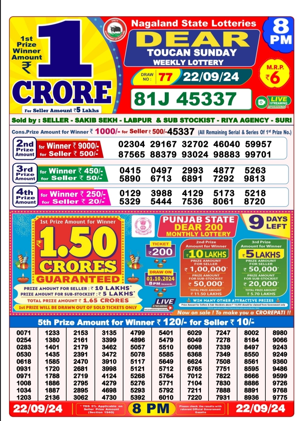 Dear toucan sunday weekly lottery 8pm result 22/09/24 22-09-2024 Leave a Comment on Dear toucan sunday weekly lottery 8pm result 22/09/24