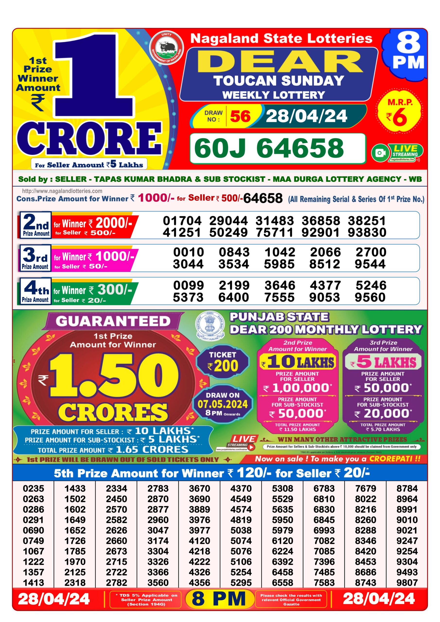 Dear toucan sunday weekly lottery 8pm result 28/04/24 28-04-2024 Leave a Comment on Dear toucan sunday weekly lottery 8pm result 28/04/24