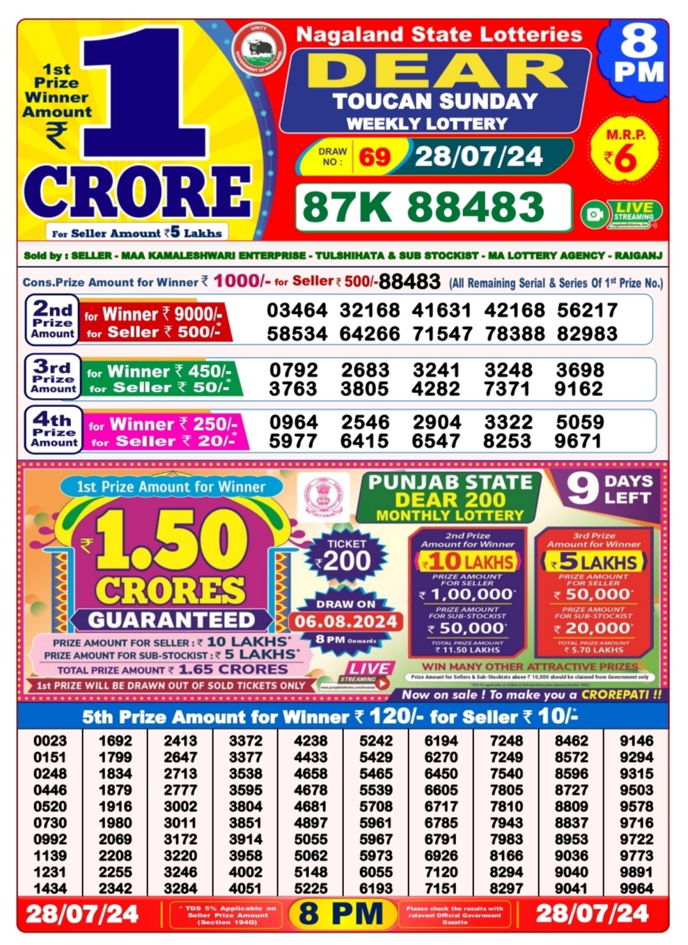 Dear toucan sunday weekly lottery 8pm result 28/07/24 28-07-2024 Leave a Comment on Dear toucan sunday weekly lottery 8pm result 28/07/24