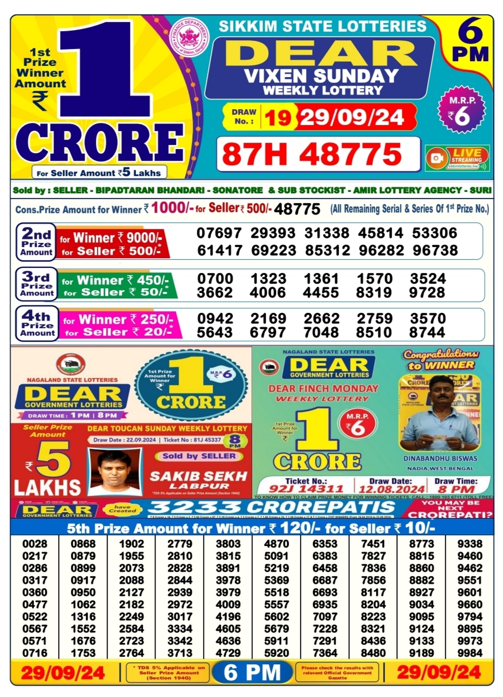 Dear vixen sunday weekly lottery 6pm result 29/09/24 29-09-2024 Leave a Comment on Dear vixen sunday weekly lottery 6pm result 29/09/24