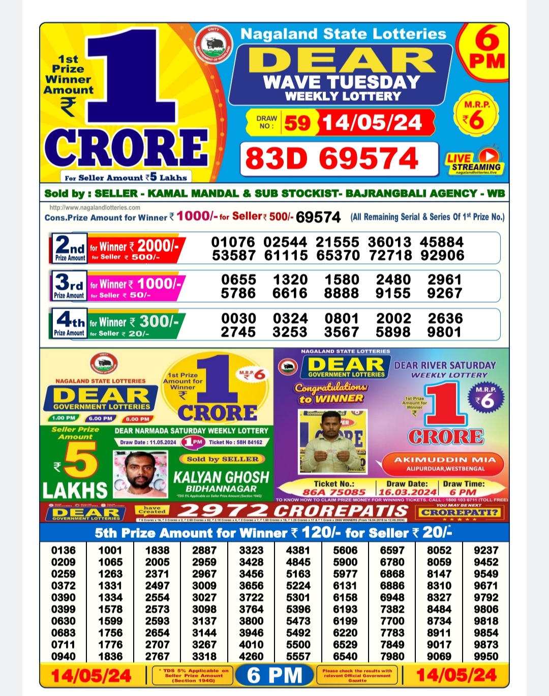 Dear wave tuesday weekly lottery 6pm result 14/05/24 14-05-2024 Leave a Comment on Dear wave tuesday weekly lottery 6pm result 14/05/24