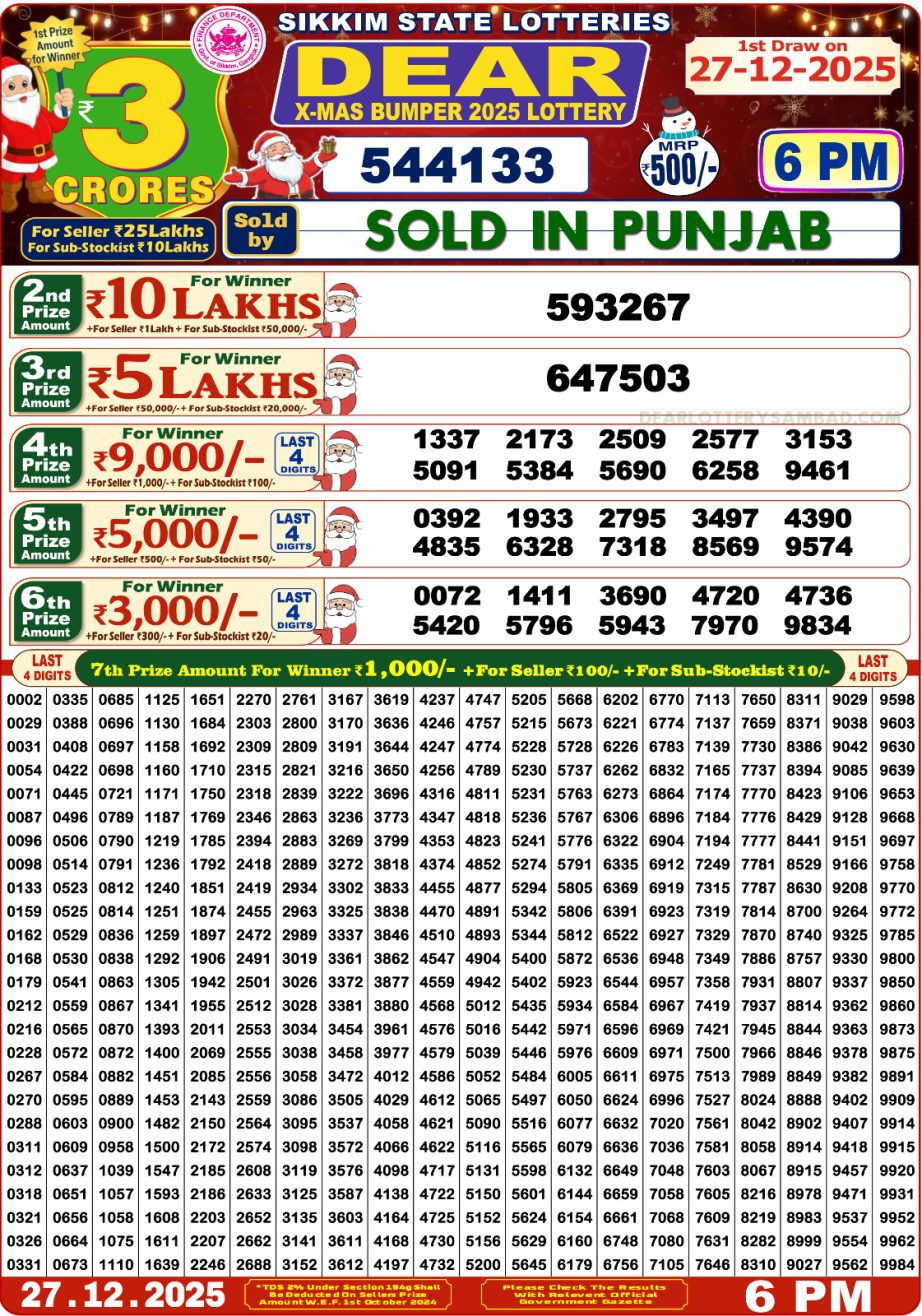 Dear X-Mas Bumper 2025 Lottery Result 27.12.25 27-12-2025 Leave a Comment on Dear X-Mas Bumper 2025 Lottery Result 27.12.25