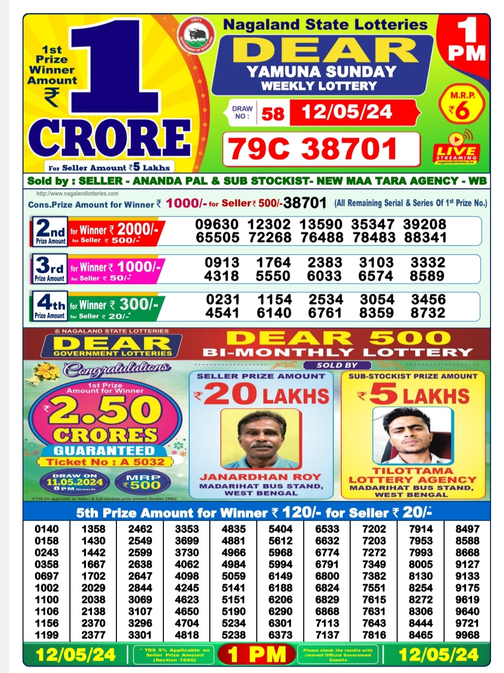 Dear yamuna sunday weekly lottery 1pm result 12/05/24 12-05-2024 Leave a Comment on Dear yamuna sunday weekly lottery 1pm result 12/05/24