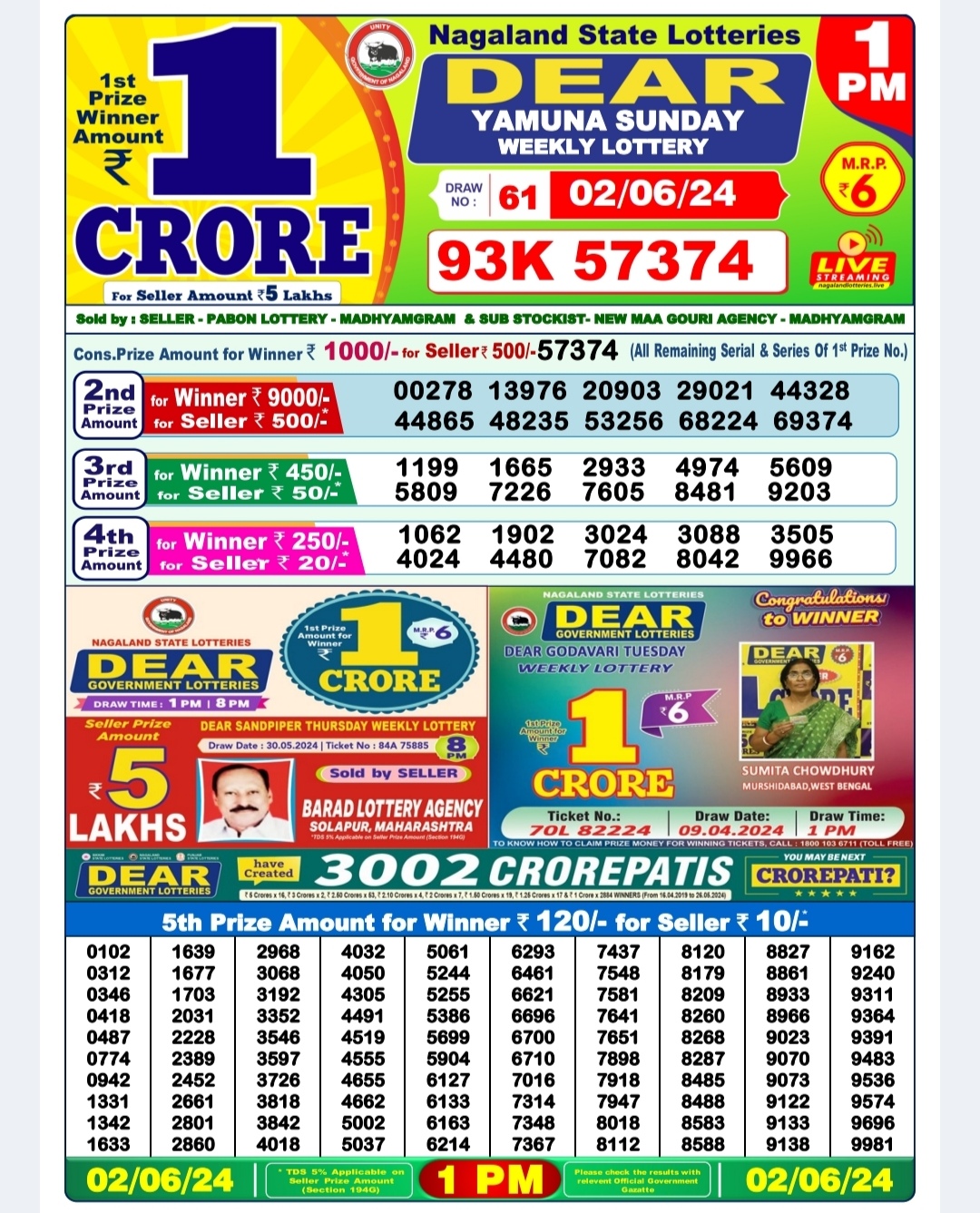 Dear yamuna Sunday weekly lottery 1pm result 2/06/24 02-06-2024 Leave a Comment on Dear yamuna Sunday weekly lottery 1pm result 2/06/24