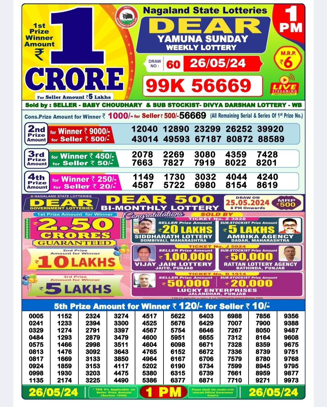 Dear yamuna sunday weekly lottery 1pm result 26/05/24 26-05-2024 Leave a Comment on Dear yamuna sunday weekly lottery 1pm result 26/05/24