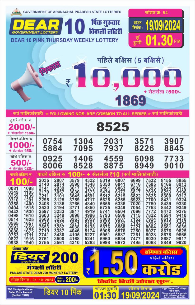 Dear10 pink Thursday weekly lottery 1.30pm result 19/09/24 19-09-2024 Leave a Comment on Dear10 pink Thursday weekly lottery 1.30pm result 19/09/24