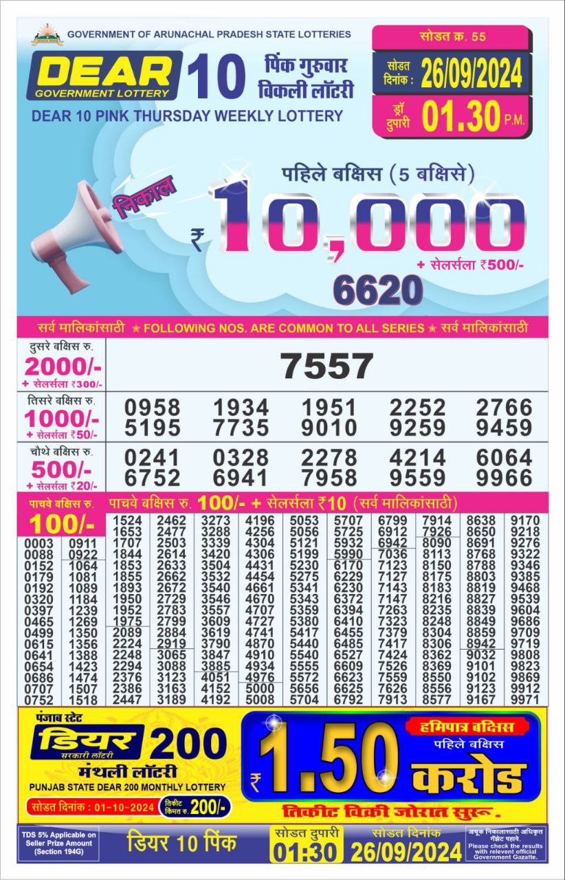 Dear10 pink Thursday weekly lottery 1.30pm result 26/09/24 26-09-2024 Leave a Comment on Dear10 pink Thursday weekly lottery 1.30pm result 26/09/24