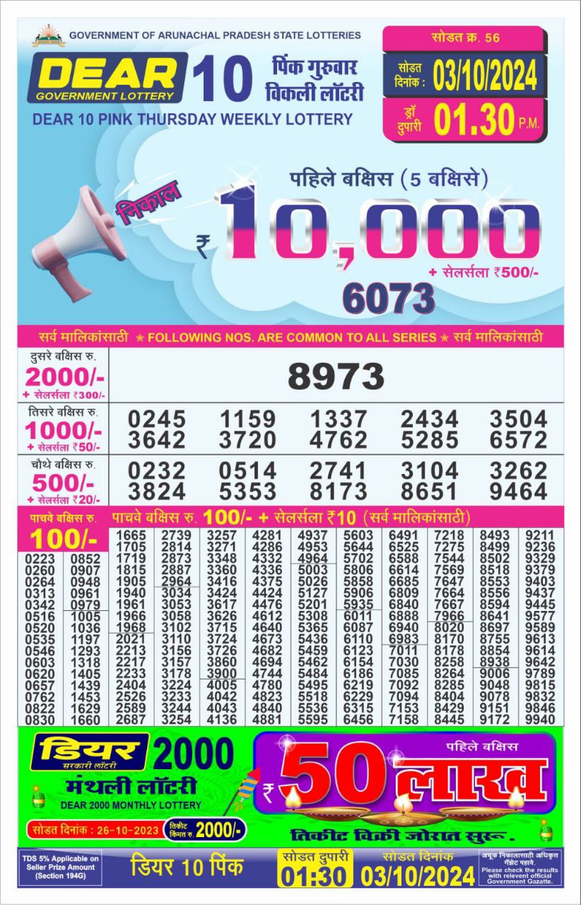 Dear10 pink Thursday weekly lottery 1.30pm result 3/10/24 03-10-2024 Leave a Comment on Dear10 pink Thursday weekly lottery 1.30pm result 3/10/24