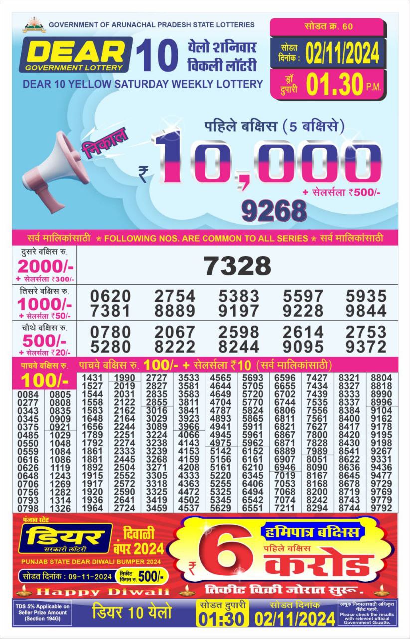 Dear10 yellow saturday weekly lottery 1.30pm result 2/11/24 02-11-2024 Leave a Comment on Dear10 yellow saturday weekly lottery 1.30pm result 2/11/24