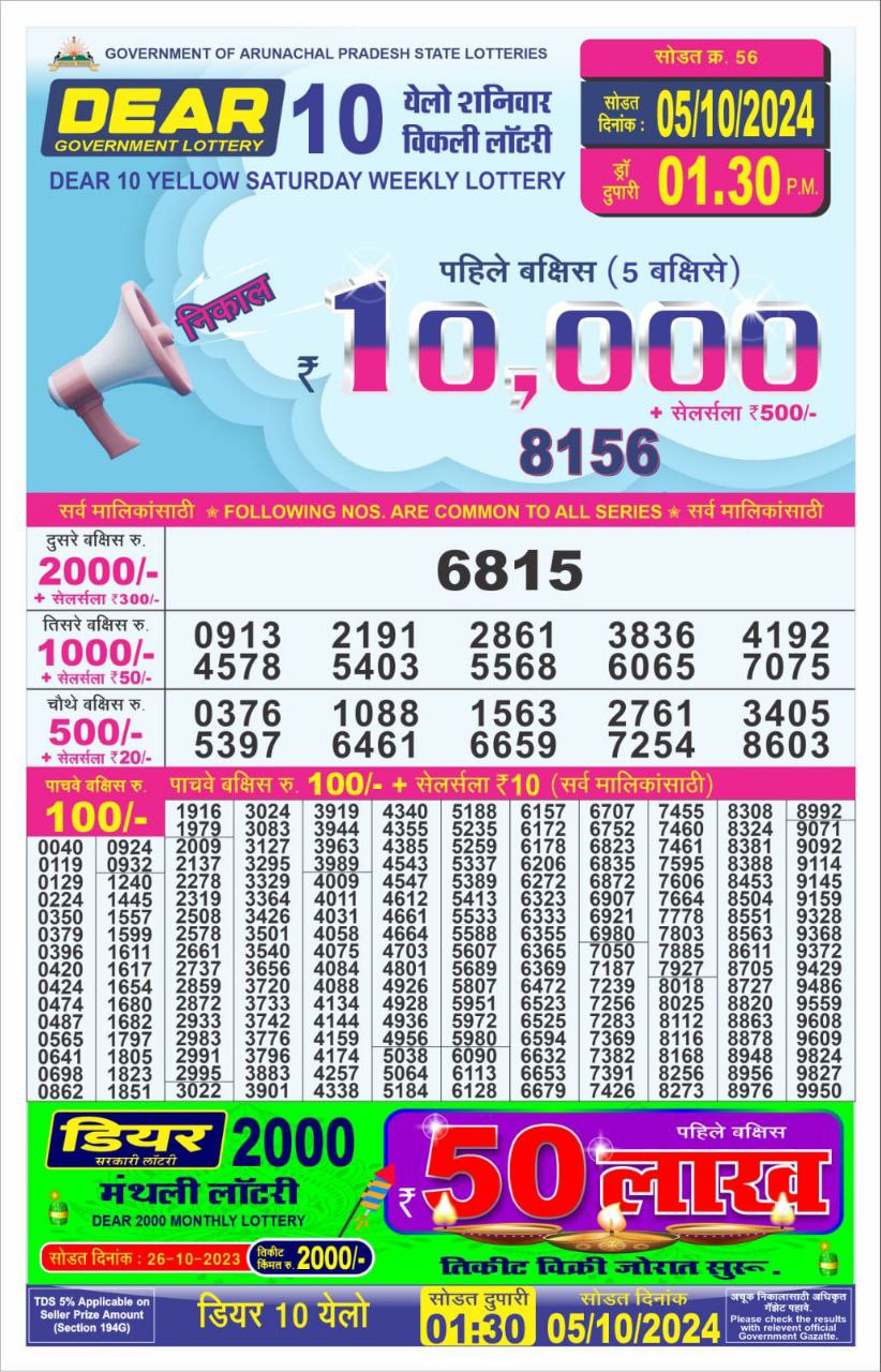 Dear10 yellow saturday weekly lottery 1.30pm result 5/10/24 05-10-2024 Leave a Comment on Dear10 yellow saturday weekly lottery 1.30pm result 5/10/24