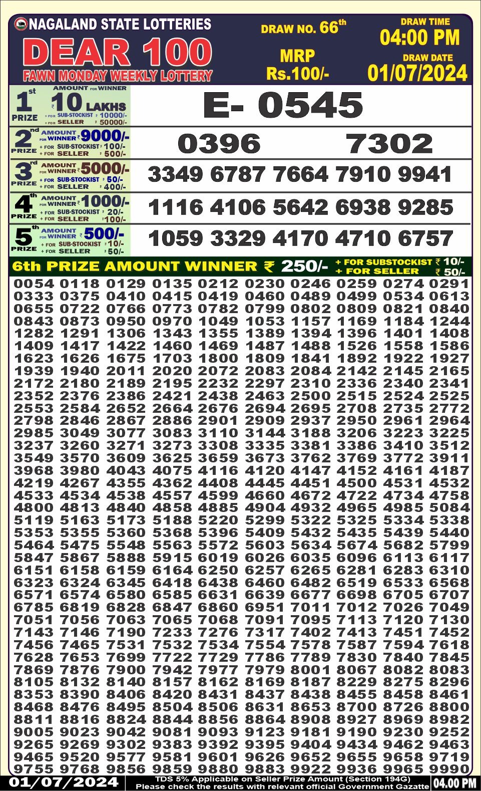 Dear100 fawn monday weekly lottery 4pm result 1/07/24 01-07-2024 Leave a Comment on Dear100 fawn monday weekly lottery 4pm result 1/07/24