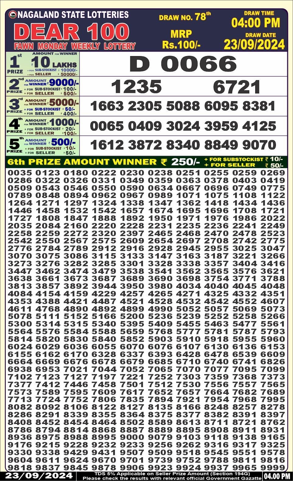 Dear100 fawn monday weekly lottery 4pm result 23/09/24 23-09-2024 Leave a Comment on Dear100 fawn monday weekly lottery 4pm result 23/09/24
