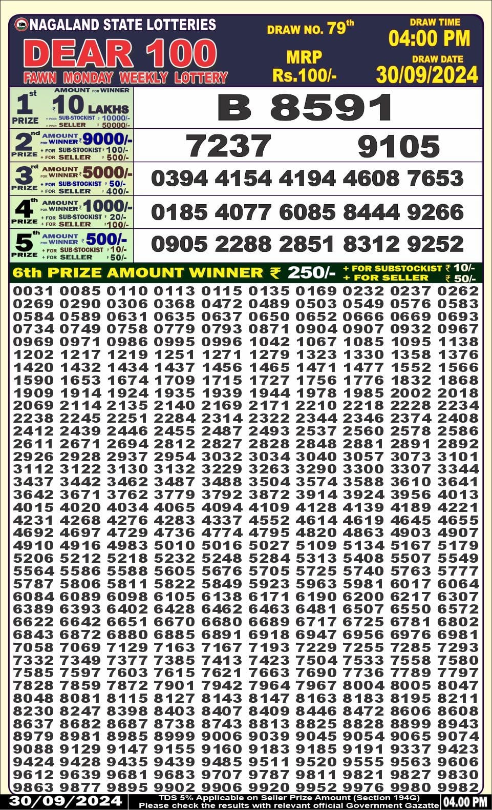 Dear100 fawn monday weekly lottery 4pm result 30/09/24 30-09-2024 Leave a Comment on Dear100 fawn monday weekly lottery 4pm result 30/09/24