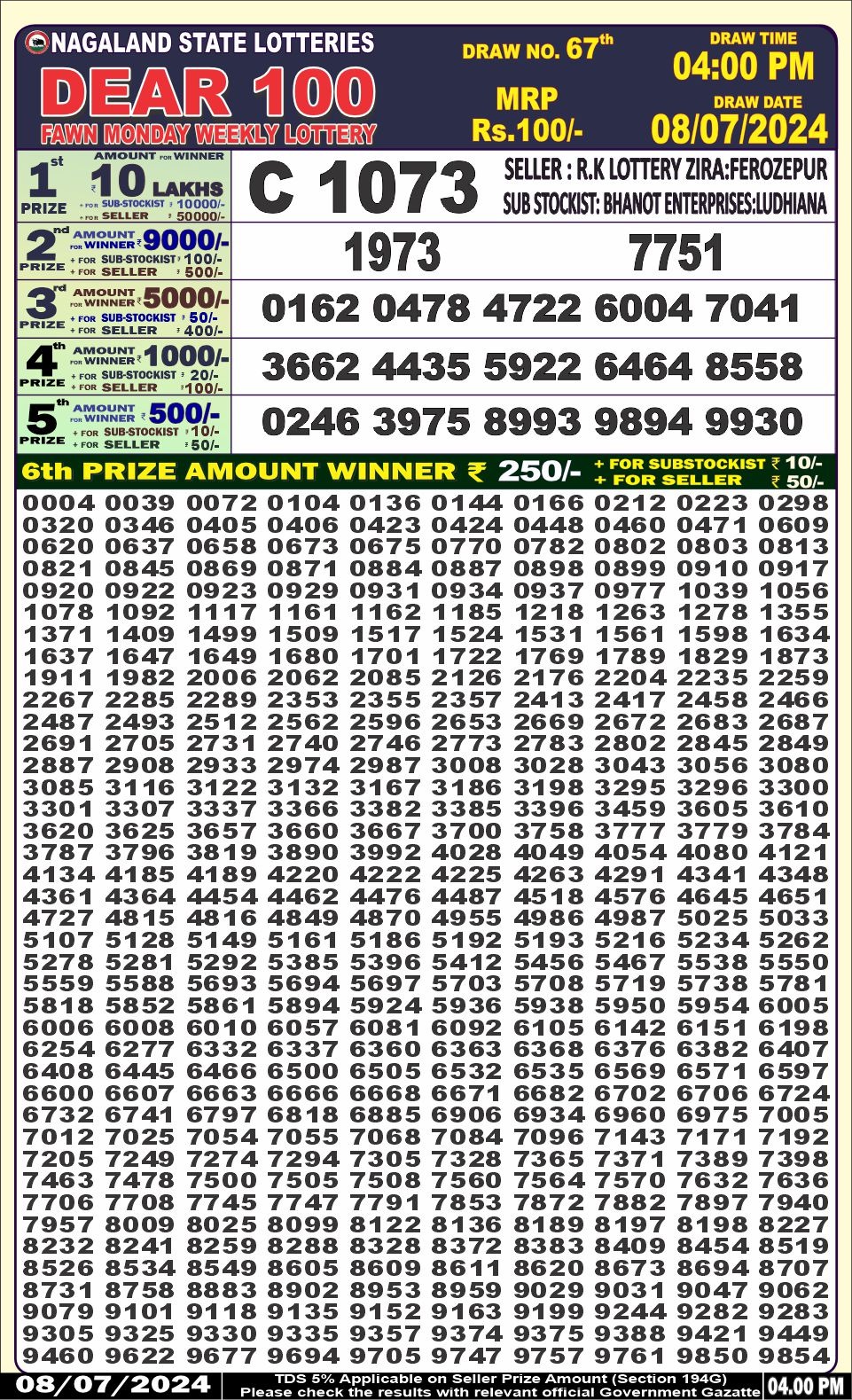 Dear100 fawn monday weekly lottery 4pm result 8/07/24 08-07-2024 Leave a Comment on Dear100 fawn monday weekly lottery 4pm result 8/07/24