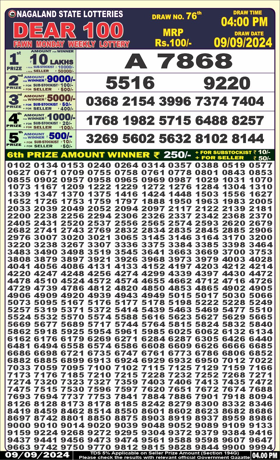 Dear100 fawn monday weekly lottery 4pm result 9/09/24 09-09-2024 Leave a Comment on Dear100 fawn monday weekly lottery 4pm result 9/09/24