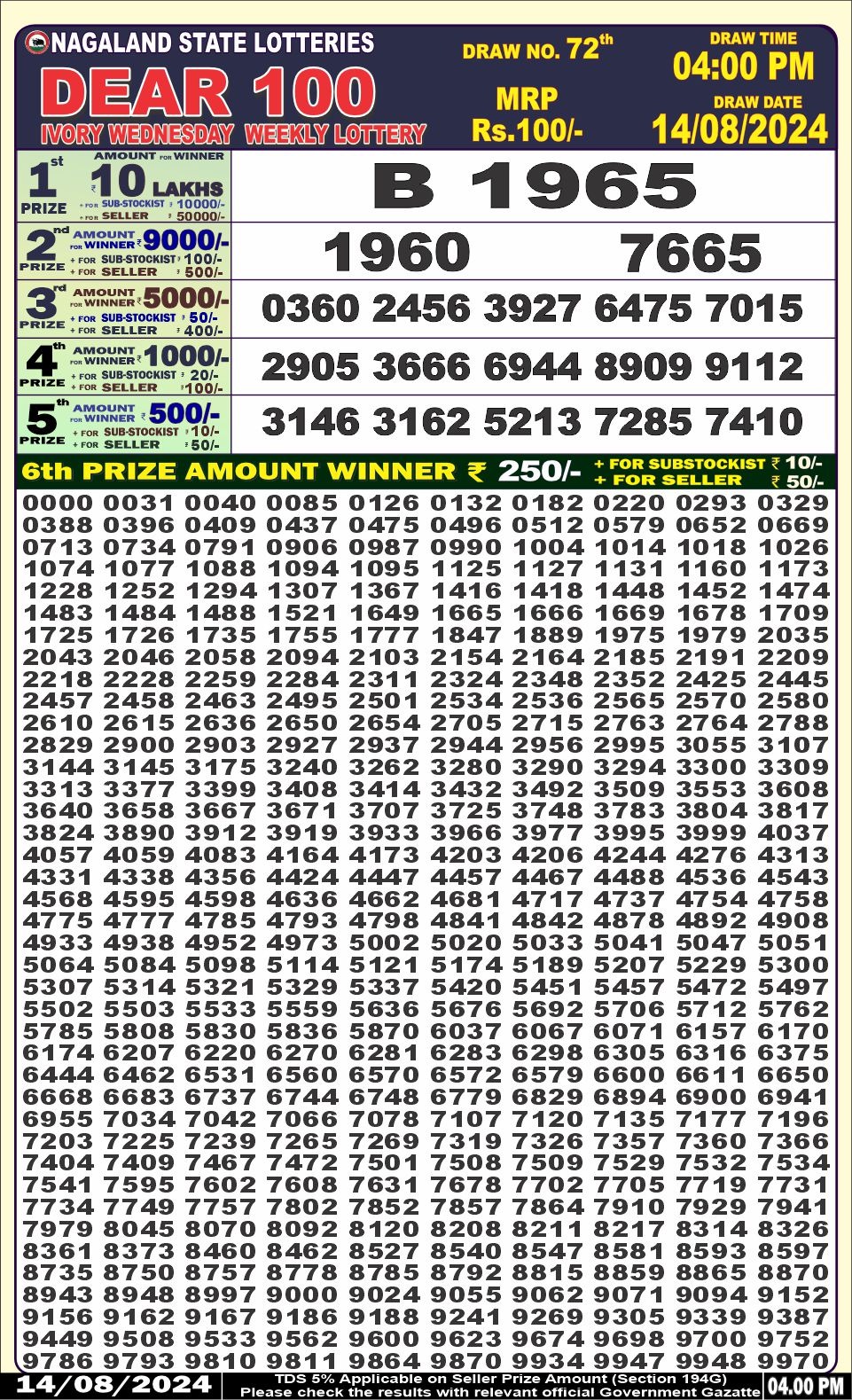 Dear100 ivory Wednesday weekly lottery 4pm result 14/08/24 14-08-2024 Leave a Comment on Dear100 ivory Wednesday weekly lottery 4pm result 14/08/24