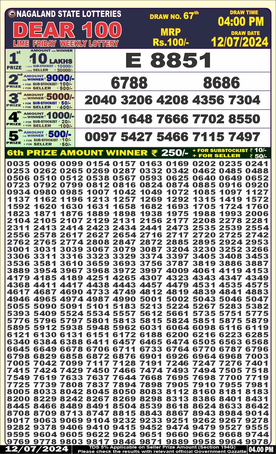 Dear100 lime Friday weekly lottery 4pm result 12/07/24 12-07-2024 Leave a Comment on Dear100 lime Friday weekly lottery 4pm result 12/07/24