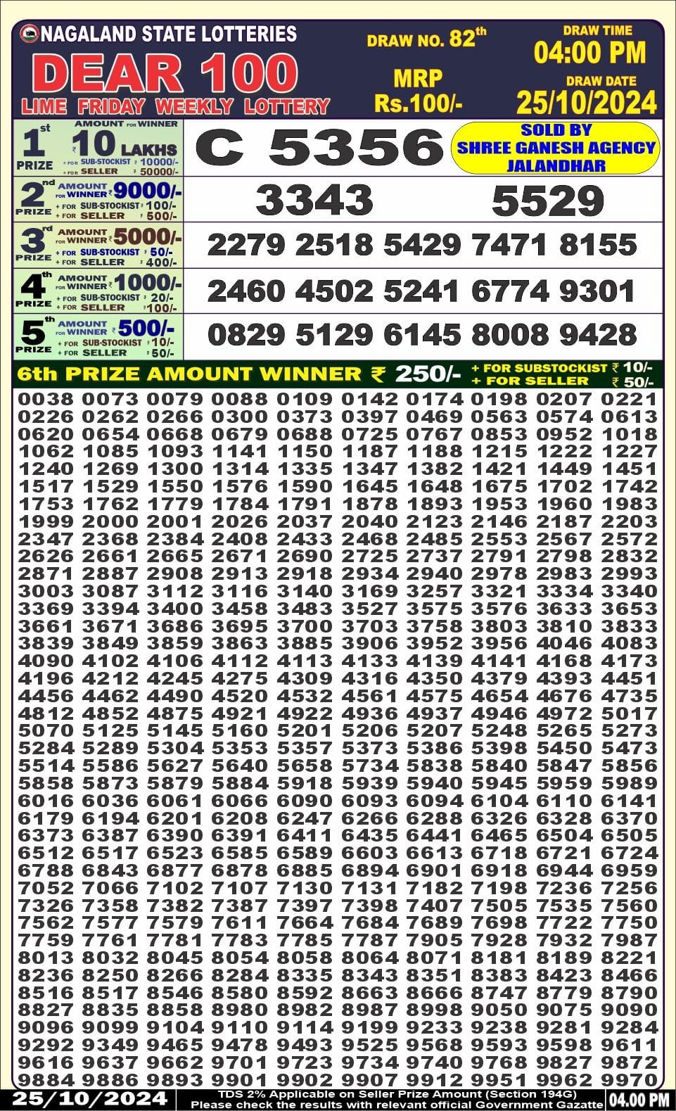 Dear100 lime Friday weekly lottery 4pm result 25/10/24 25-10-2024 Leave a Comment on Dear100 lime Friday weekly lottery 4pm result 25/10/24