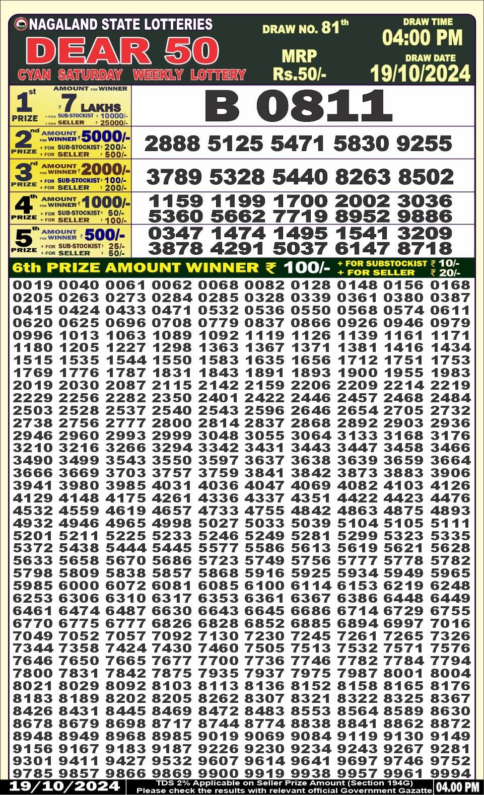 Dear50 cyan saturday weekly lottery 4pm result 19/10/24 19-10-2024 Leave a Comment on Dear50 cyan saturday weekly lottery 4pm result 19/10/24