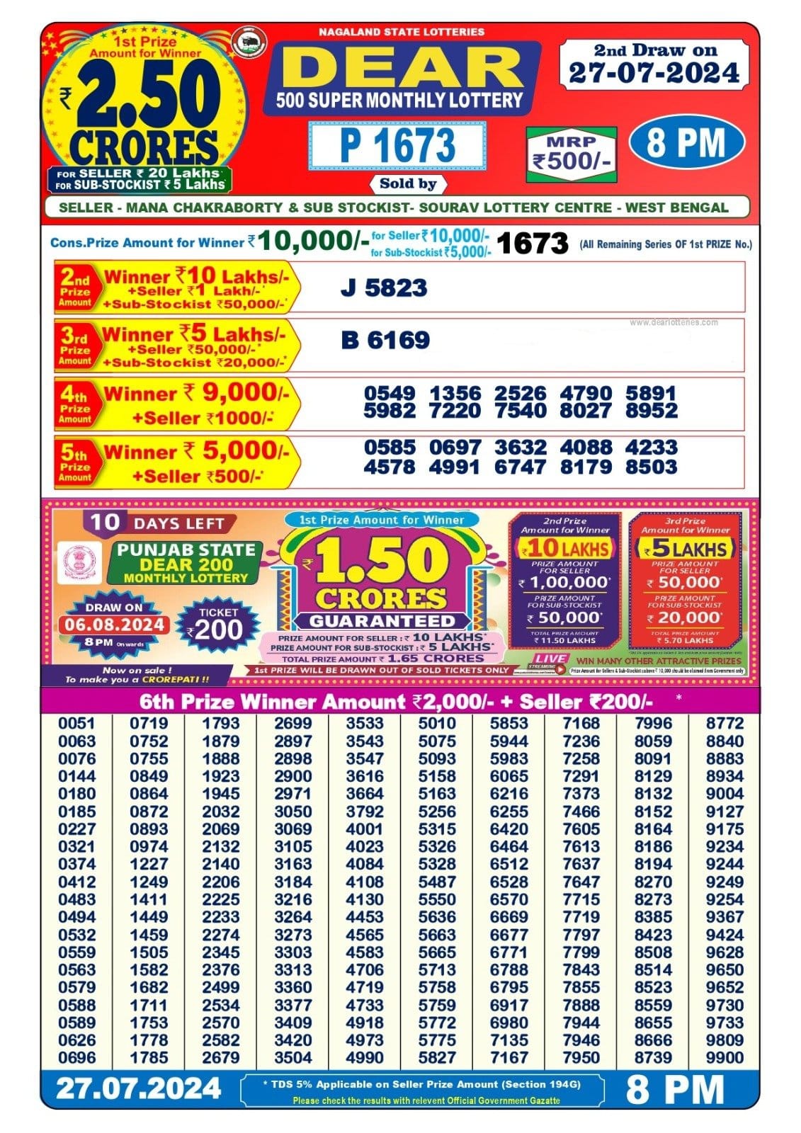 Dear500 super monthly lottery 8pm result 27/07/24 27-07-2024 Leave a Comment on Dear500 super monthly lottery 8pm result 27/07/24