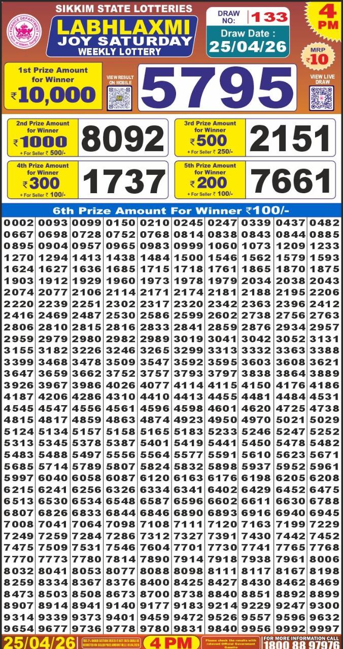 Labh Laxmi Lottery Result 25.04.26 | 4 PM 25-04-2026 Leave a Comment on Labh Laxmi Lottery Result 25.04.26 | 4 PM