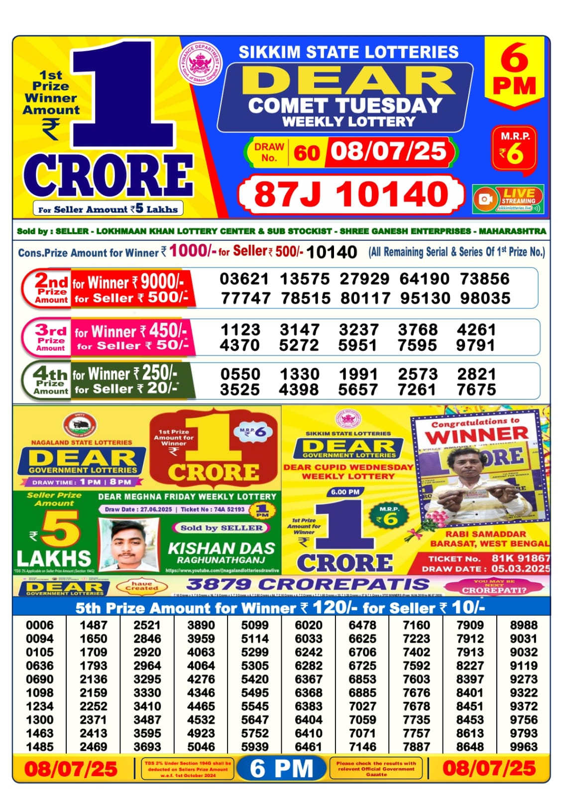Lottery Sambad Today 08.07.25 | Dear Lottery 6 PM Result Live 08-07-2025 Leave a Comment on Lottery Sambad Today 08.07.25 | Dear Lottery 6 PM Result Live