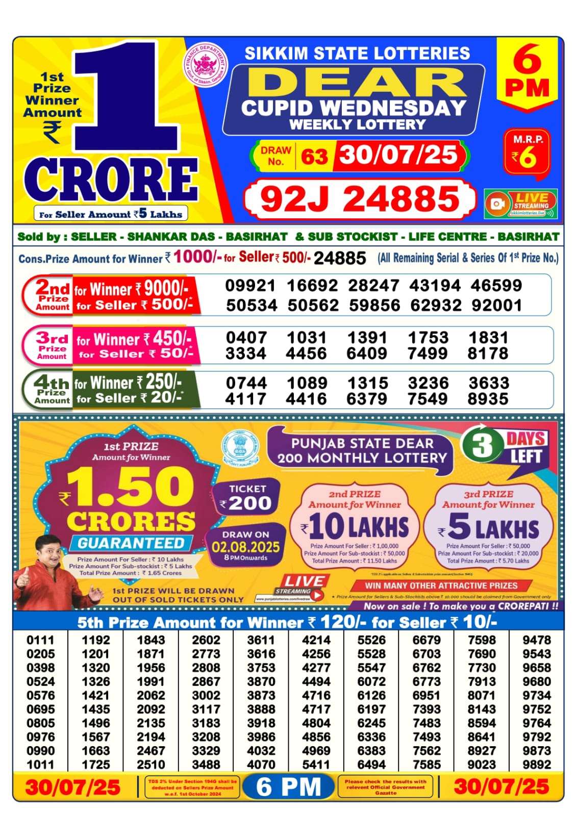 Lottery Sambad Today 30.07.25 | Dear Lottery 6 PM Result Live 30-07-2025 Leave a Comment on Lottery Sambad Today 30.07.25 | Dear Lottery 6 PM Result Live