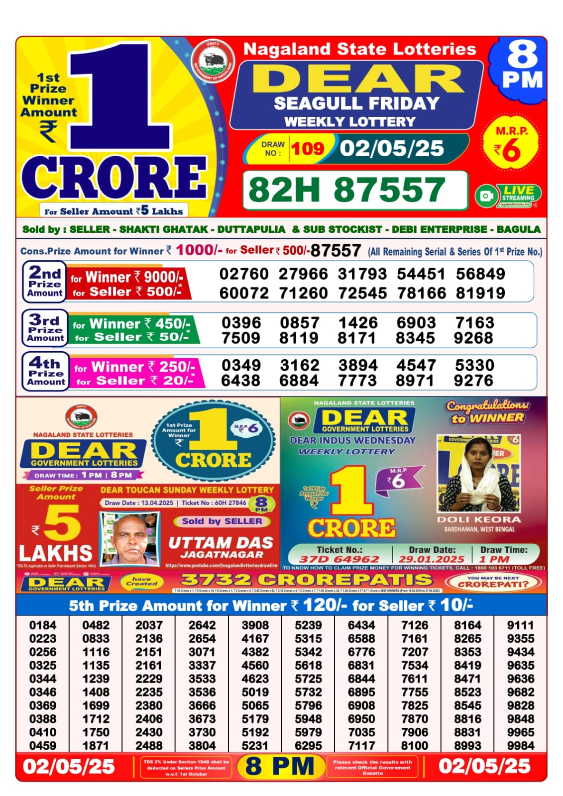 Results for 8 PM draw of Dear Horizon weekly lottery 02.05.25 are being announced. Full result will be available shortly on this page.