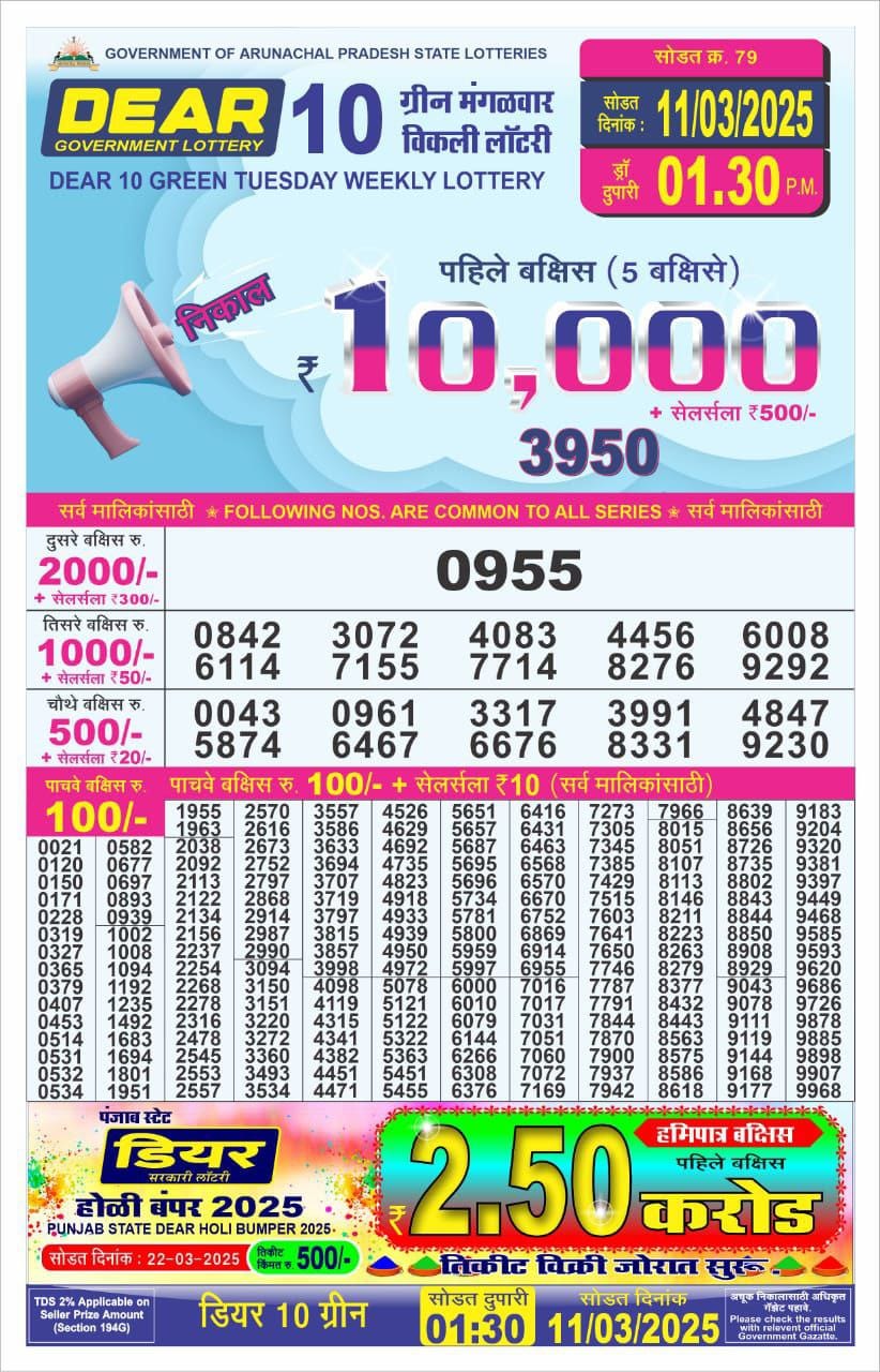 Lottery sambad today Dear 10 1.30PM 11-03-2025