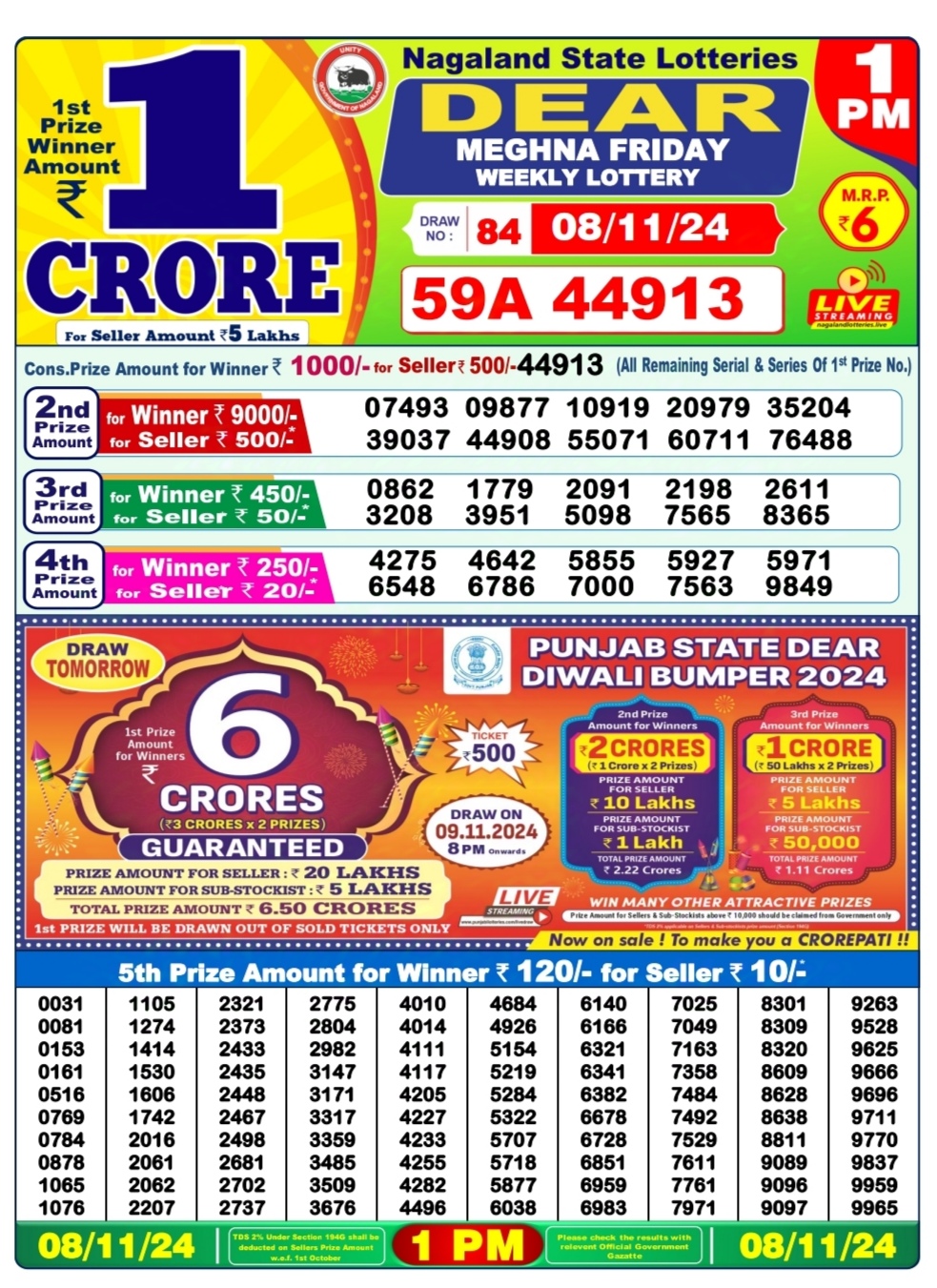 Dear meghna Friday weekly lottery 1pm result 8/11/24