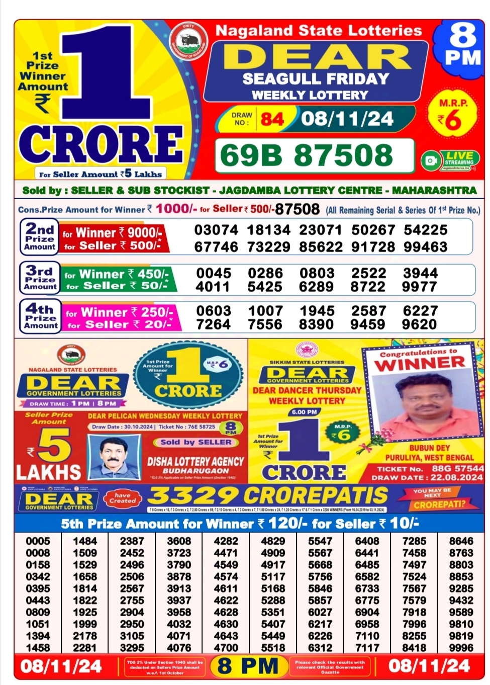 Dear seagull Friday weekly lottery 8pm result 8/11/24