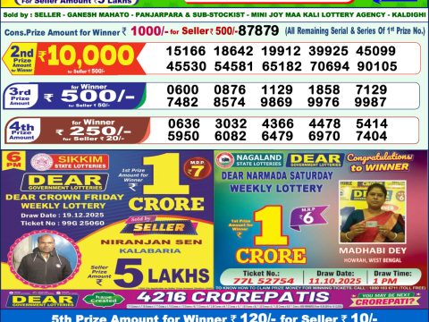 Lottery Sambad Result Today 20.12.25 | 6 PM